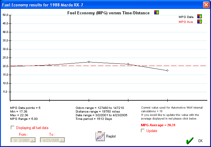 average Miles Per Gallon (MPG) and displays it in graphical form so